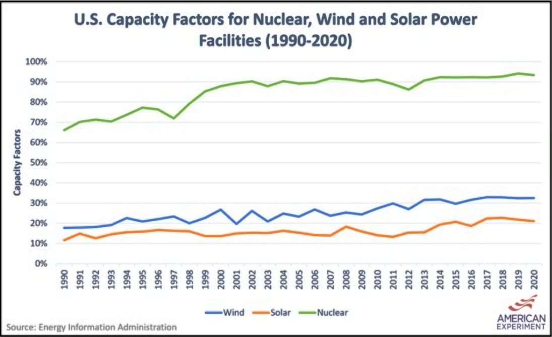 How much better is nuclear energy than other energy sources? Lets first look at capacity factors of different energy sources: