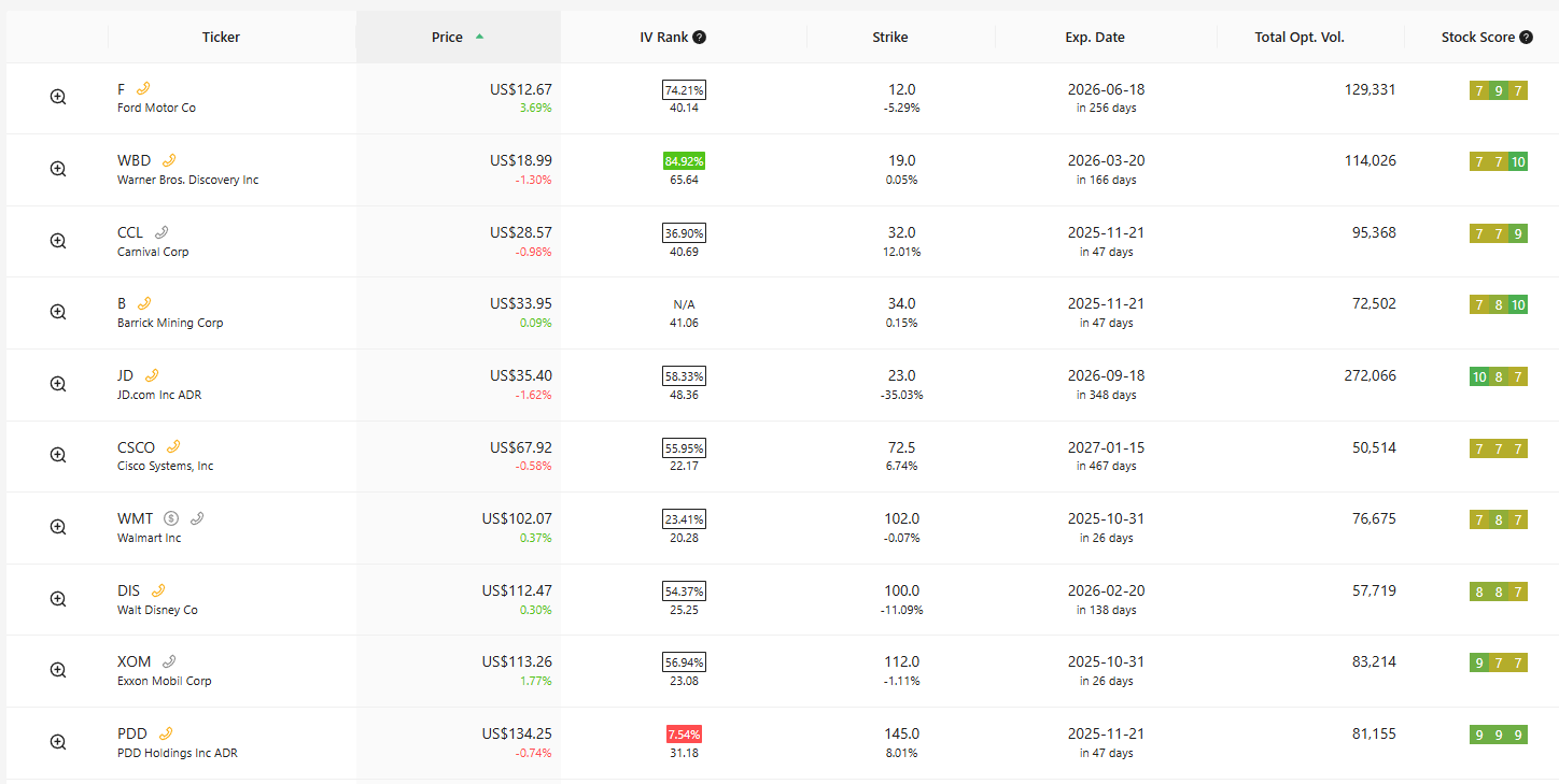 - Good option liquidity - Choose stocks with tight bid/ask spreads and active option chains to ensure smooth trade execution.